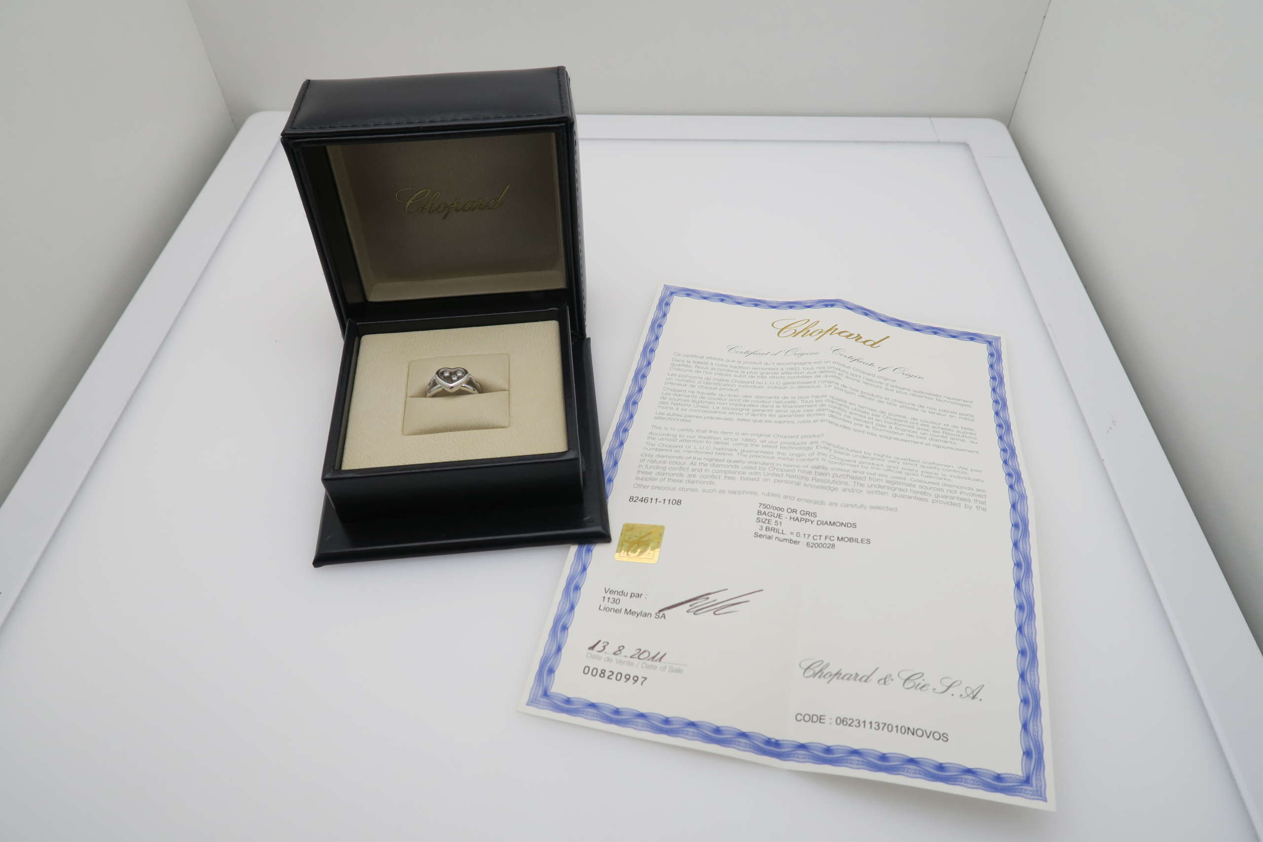 Bague Chopard Happy Diamonds en or blanc 750/00, 3 diamants mobiles de 0.17 ct, doigt 51